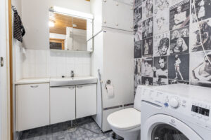 • Varusteet: pesukoneliitäntä, wc-istuin, suihku, peilikaappi
