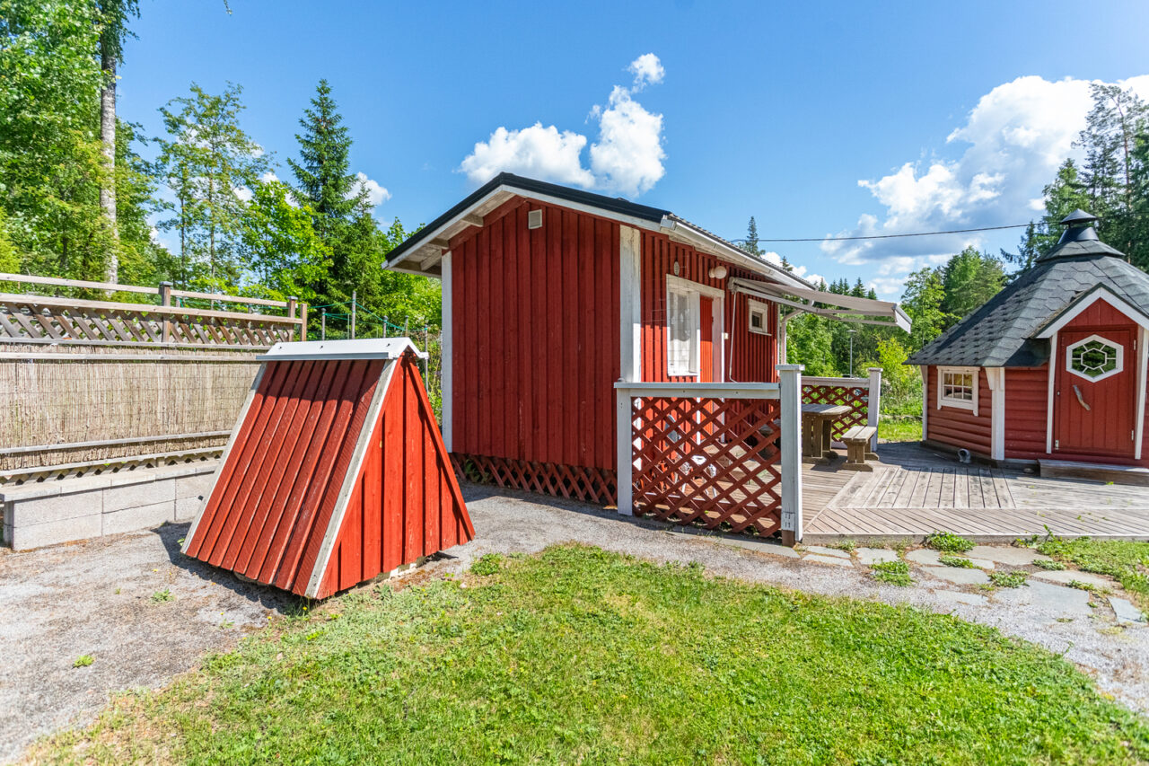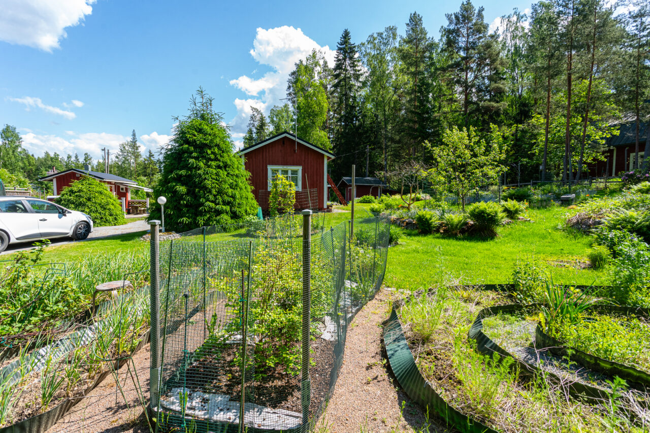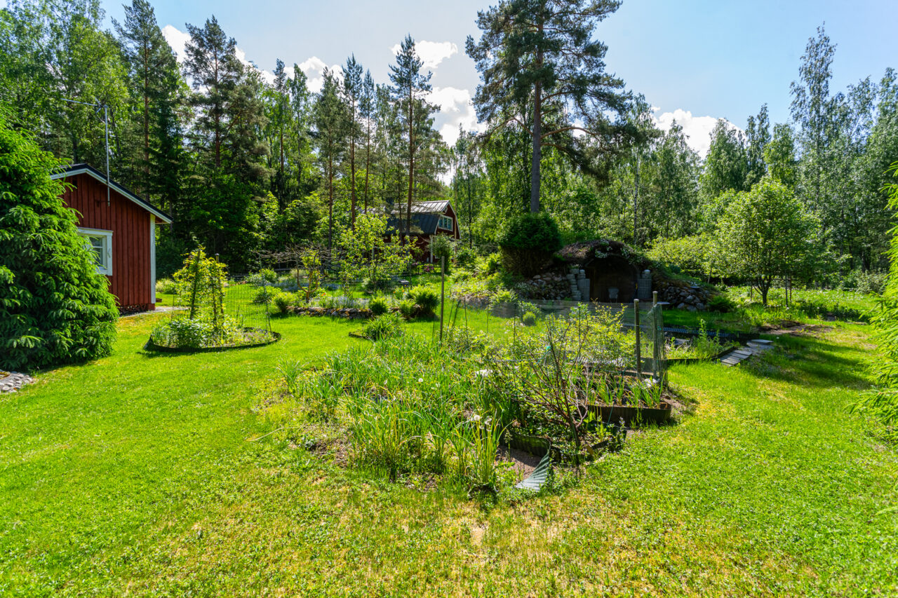 Mökkiä on pidetty kuin kukkaa kämmenellä, v. 2002 rakennettu maakellari on todella käyttökelpoinen sadon säilömiseen. Grillikota on ja varastotilaa myös sekä erillinen pihasauna puukiukaalla. Puutarhassa on sekä hyötykasveja että perennoja seuraavan puutarhurin käyttöön. Sähköt on ja saunalle tulee vesi porakaivosta. Sähköt uusittu -97 ja muutakin remonttia tehty sekä saunalla että mökissä. Iso, varaava takka tuo lämpöä viileisiinkin iltoihin.