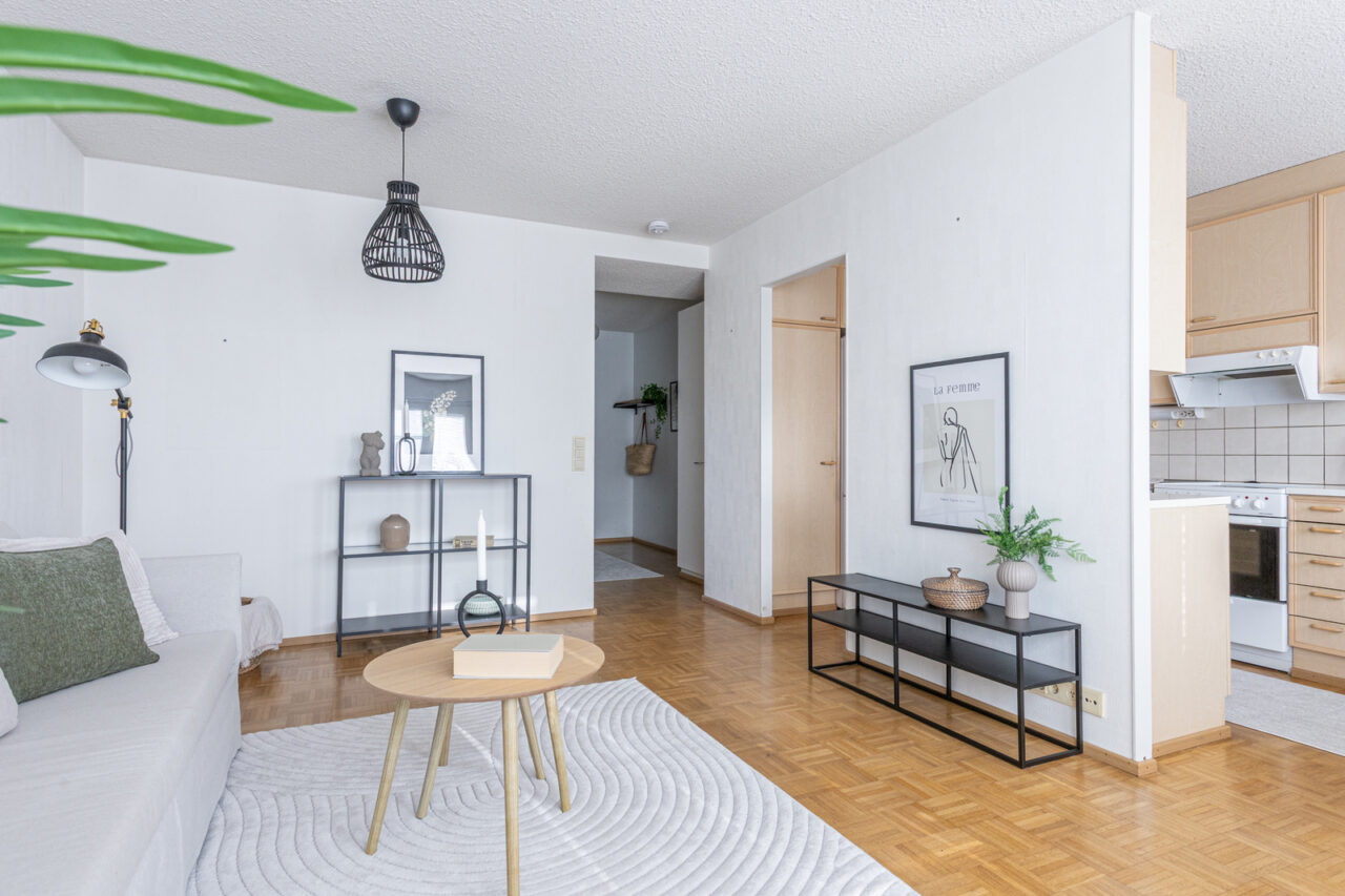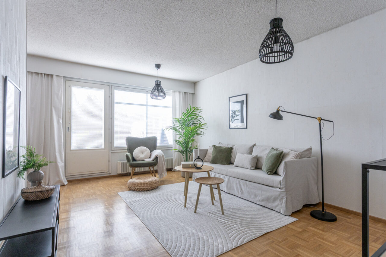 Toimiva pohjaratkaisu ja arkea helpottavat yksityiskohdat tekevät arjesta sujuvaa ja helppoa. Kodissa on tilava olohuone, josta on kulku omalle takapihalle. Makuuhuoneen yhteydessä oleva vaatehuone lisää käytännöllisyyttä ja eteisen kaapistot täydentävät säilytysratkaisut. Kylpyhuoneen yhteyteen sijoittuu kätevä kodinhoitonurkkaus pesukoneliitäntöineen ja oma sauna kruunaa asumismukavuuden. Asunnon pintoja päivittämällä saat luotua mieleisesi kokonaisuuden.