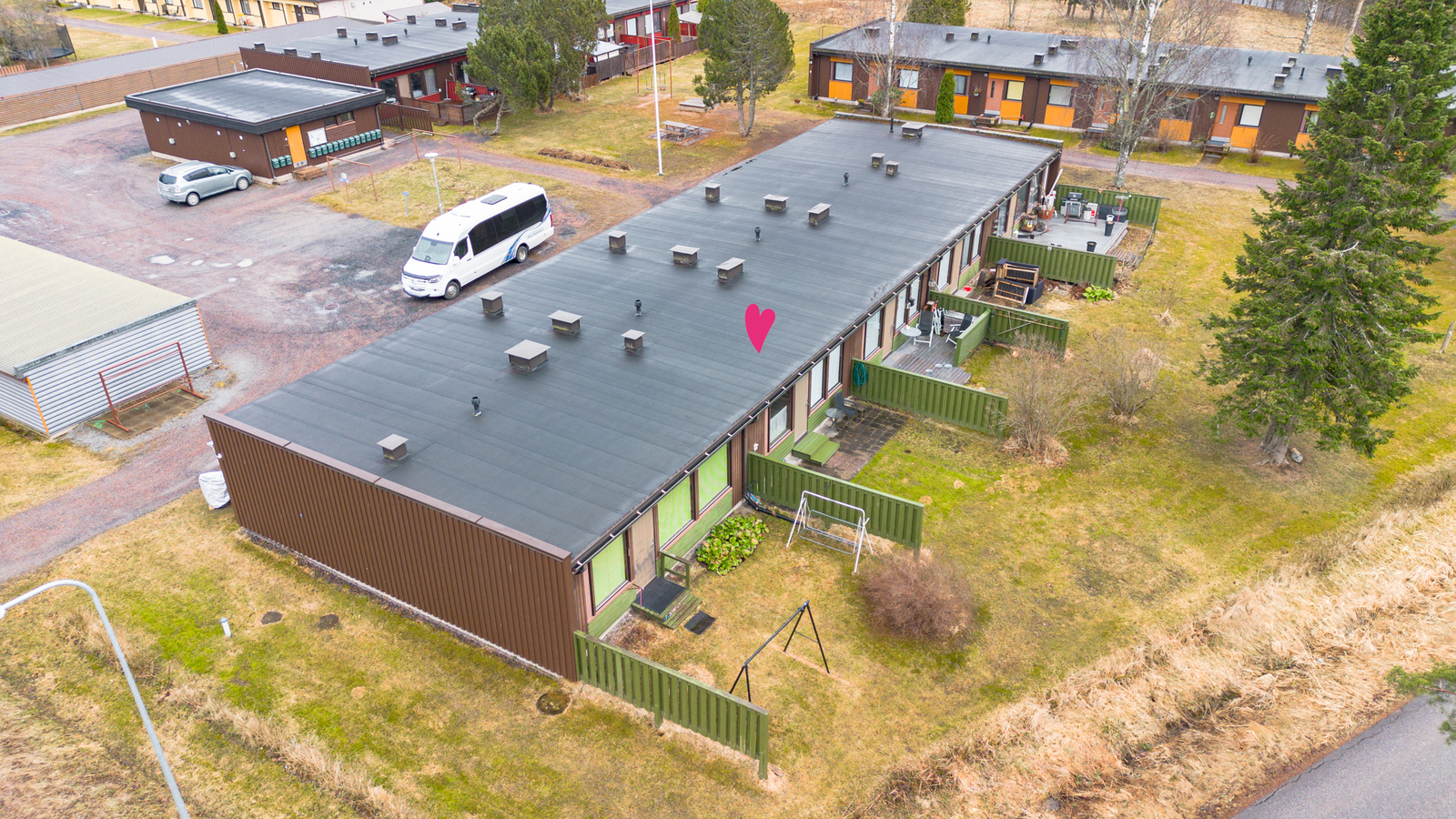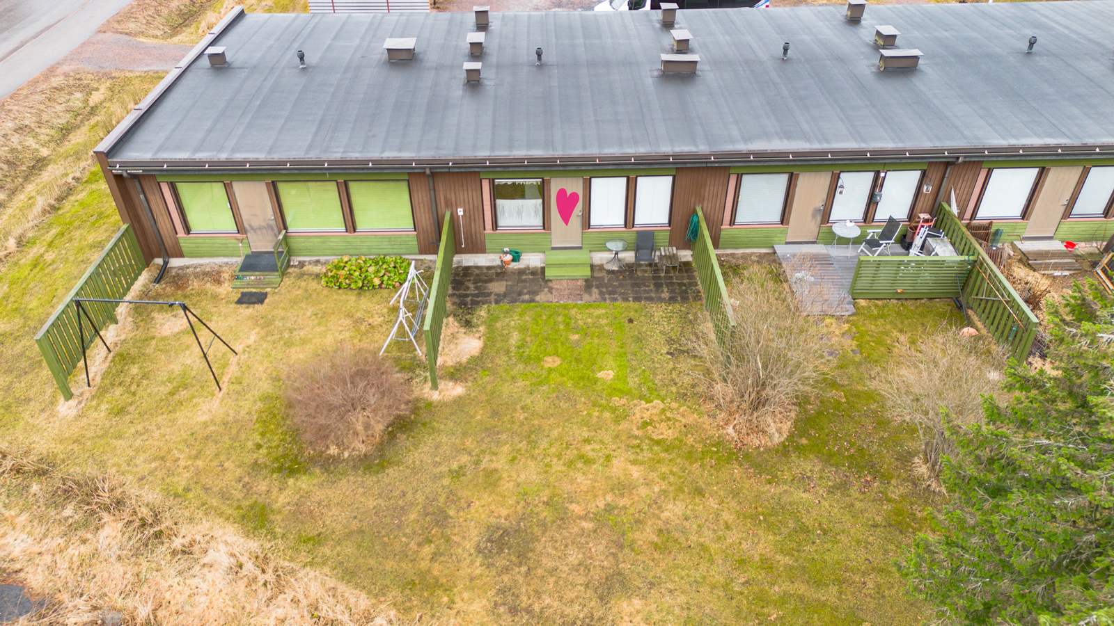 Tässä rivitalokaksiossa on tilava olohuone yhdistettynä keittiöön, makuuhuone isolla vaatehuoneella sekä oma sauna, kylpyhuone ja erillinen wc. Tilava piha odottaa grillaajaa ja tilaa jää vielä istutuksille ja lasten leikeille.