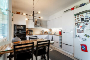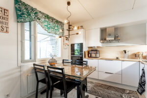 Asuntoon on muutama vuosi sitten tehty paljon remonttia: kylpyhuone, wc ja keittiö on uudistettu ammattilaisen toimesta laadukkain ja ajattomin materiaalein. Erityisesti keittiö on erittäin tyylikäs. Koko asunnon lattiaa peittävä laminaatti on hyväkuntoinen. Seinäpinnat ovat harmoniset ja modernein sävyin maalatut. Huoneistoon ei ole tarvetta tehdä mitään remonttia. Keittiöön on asennettu laadukkaat Boschin koneet ja uuni sekä mikro on integroitu. Oma terassi kruunaa kesäpäivän vieton.