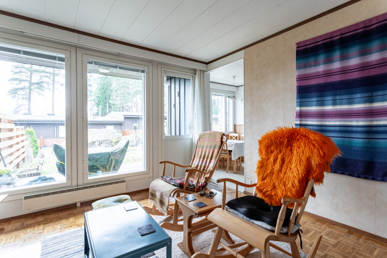 Valoisa kolmio on pian vapautumassa 12 huoneiston rivitaloyhtiössä, Asunto Oy Sammalkivi. Ikkunat ja ulko-ovet uusittiin viime vuonna ja muutenkin yhtiöstä huolehditaan hyvin. Sijainniltaan asunto on hyvällä paikalla; puistot, ala-aste ja päiväkoti lähistöllä. Tässä yhtiössä jokaiselle asunnolle on varattu autokatospaikka veloituksetta. Iso etu moneen muuhun verrattuna.
