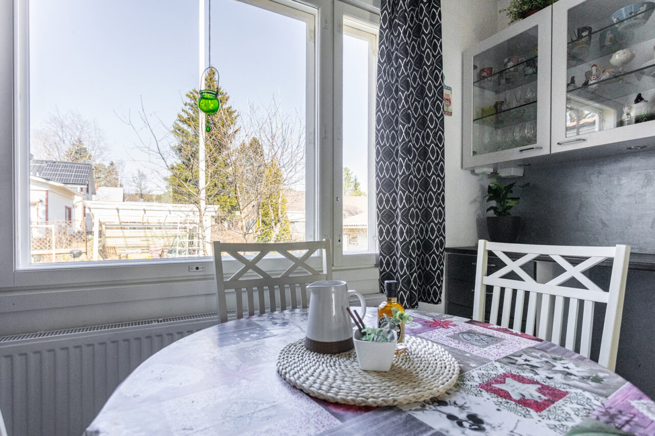 Lannemäentie 38:ssa sijaitseva viehättävä rintamamiestalo tarjoaa toimivaa tilaa ja kodikasta tunnelmaa kolmessa kerroksessa. Yläkerrasta löytyy kaksi reilunkokoista makuuhuonetta, joista toisen yhteydessä on erillinen tila, joka soveltuu mainiosti esimerkiksi työpisteeksi. Valokuituyhteys takaa sujuvan arjen myös etätyössä. Lappeiden alle sijoittuvat säilytystilat tuovat runsaasti käytännöllistä lisätilaa. Keskikerros toimii kodin sydämenä: valoisa olohuone, tunnelmallinen huone takalla ja leivinuunilla (2006) sekä vuonna 2013 runkoa myöten uusittu keittiö muodostavat viihtyisän kokonaisuuden arkeen ja yhdessäoloon. Kellarikerroksessa sijaitsee vuonna 2009 uusittu saunaosasto, jossa on puukiuas, kylpyhuone kahdella suihkulla sekä tilava kodinhoitohuone. Lisäksi kellarista löytyy iso harrastehuone, josta on kulku autotalliin, jossa on myös rasvamonttu; erinomainen ratkaisu autoilijalle tai harrastajalle. Wc-istuin löytyy jokaisesta kerroksesta, mikä lisää asumismukavuutta.