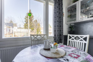 Talo sijaitsee omalla tontilla, ja energiatehokkuutta on parannettu merkittävästi: maalämpö on asennettu vuonna 2022 ja aurinkopaneelit vuonna 2023. Kiinteistöä on päivitetty vuosien varrella kattavasti, ja valmiiksi tehty kuntotarkastus (2026) tuo lisävarmuutta ostajalle. Pihapiiri hurmaa vehreydellään; marjapensaat sekä kirsikka-, omena-, päärynä- ja luumupuut tarjoavat satoa ja viihtyisyyttä. Lapsiperheelle erinomainen sijainti sillä päiväkoti ja koulu ovat vieressä.