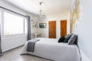 | Tehdyt korjaukset | 2023 Sähköpaneelit katolle 2022 Maalämpö 2013 Keittiö runkoineen 2009 Uusittu saunaosasto, viemärit ja käyttövesiputket 2009 Alakertaan laitettu lattialämmitys (viety maa-ainesta pois niin saatu korkeutta lisää) 2006 Varaava takka/leivinuuni 2004 Kylmä ulkovarasto 2004 Katto+räystäät (vanhat poistettu ja asennettu aluskate) 1998-2000 välillä uusittu ikkunat (lämpöikkunat) |